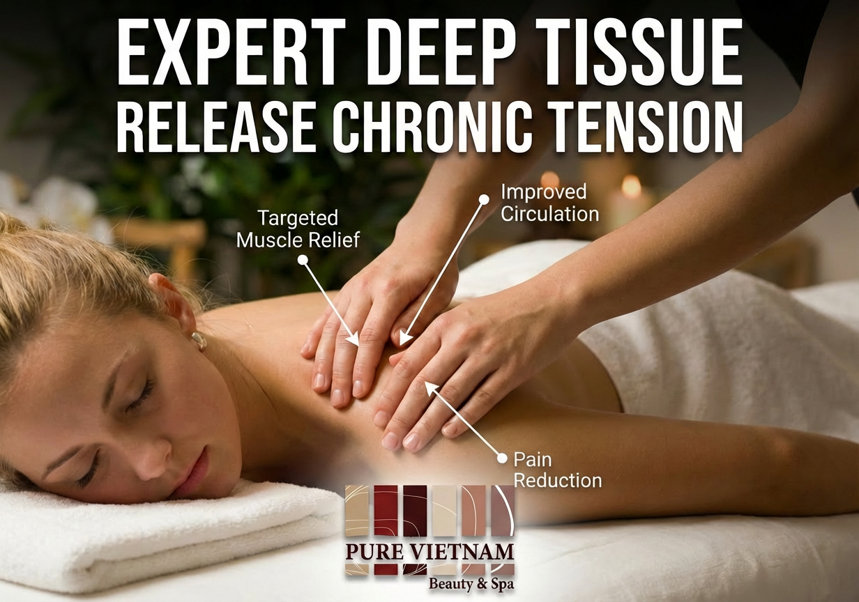 Our extensive menu of treatments ensures there’s something for everyone. Whether you seek deep relaxation or targeted pain relief, our expert therapists provide: - Massage Nha Trang specialties, including Deep tissue massage, remedial massage, Lomi Lomi massage, Vietnamese Massage, Hebal ball Massage, Aroma Massage and pregnancy massage (safe for expectant mothers). - Waxing services, including Brazilian waxing for men and women, performed with premium Australian products for a smooth, comfortable experience. - Luxurious facials, body scrubs, body wraps, and sunburn treatments to nourish and restore your skin.